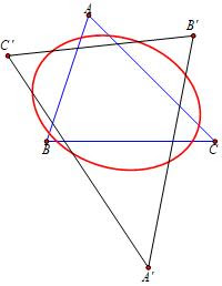 Proposition 1. Given a reference triangle and a conic, there exists a triangle $A'B'C'$ such that $ABC$ and $A'B'C'$ are perspective and mutua\-lly polar with respect to the conic.